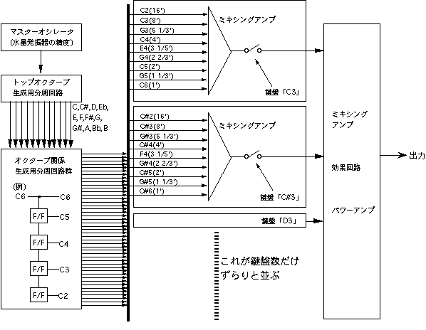 この12ビットデータによるトップオクターブ分周方式においては、もっとも周波数