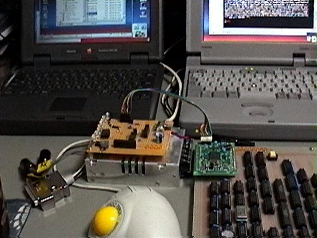 は筆者の机の全景です。実際のデバッグ段階では、ここに