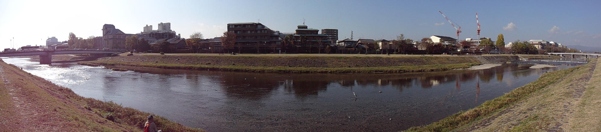 そして鶴橋→京橋(JR)、京橋→丸太町(京阪)と乗り継いで京都に移動して、15分ほど加茂川べりでまったりしてから、京大医学部の十一先生の研究室を訪問して、某プロジェクトに関する意見交換をした。 既に十一先生の著書も読んでいたし、このところの関心事ともうまく重なって、なかなかに充実したお話ができた。 十一先生とはまた、来年1月に某プロジェクトでご一緒する予定である。 京都市内はものすごい数の警官がうろうろしていたので、おそらく何かのイベントで皇族の誰かが京都に来ているのだ、と気づいた。 これは何度も国体視察をしていた経験からの確信である。 そして、川端丸太町から京都駅までの京都バスに乗ったが、「激混み京都」を満喫した。 河原町から烏丸までの四条通が片側1車線になった、というニュースは知っていたが、なるほど「歩く方が早い」のだった。
