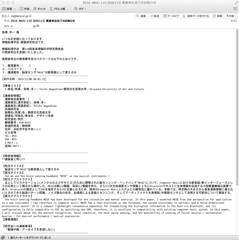 まずは今月末、上の基礎心理学会大会への聴講参加である。 11/28-29の土日の学会に聴講参加して、生体計測・被験者実験・バイオフィードバックなどについておおいに勉強する予定である。 プログラム は文字だけなのでPDFのサイズは1.7MBと小さいが、なんと92ページもあって、印刷して持参する気になれない(^_^;)。 全てがポスター発表で議論ができること、さらに