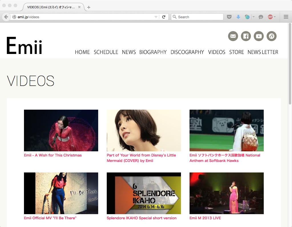 上が、そのシンガーソングライターの Emii さんのサイトである。バークリー音大卒で、 ソフトバンクの試合で国家斉唱 などもしているのだという。