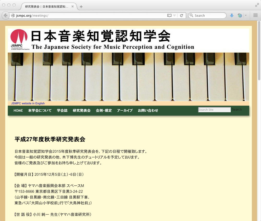 そして次は、同じ基礎心理学会に関係した、上にある来年3月の「知覚コロキウム」である。 これは、音楽知覚認知学会のルートからの情報で繋がって2015年2月の 知覚コロキウム2015 に初参加した「次」であるが、今年はその母体となっている「基礎心理学会」にどっぷりハマッてきた契機ともなった。 ただし開催時期が「2016年3月15日〜3月17日」とある。 場所は仙台と遠いので(別に理由もあり(^_^;))、仙台での前泊と後泊も必須だが、SUACの卒業式が3/15なので、例年であれば泣く泣く諦めていたところである。 ところが偶然にも、今年は僕のゼミに4回生がおらず3回生と院生なので、不義理と言えば不義理であるが、「卒業するゼミ生を放置しての学会参加」というのを避けられる、唯一の卒業式を欠席するチャンスの年なのである。 そこでこの情報が届いた時から、本年度の卒業式はパスする、と決めていたのだ。