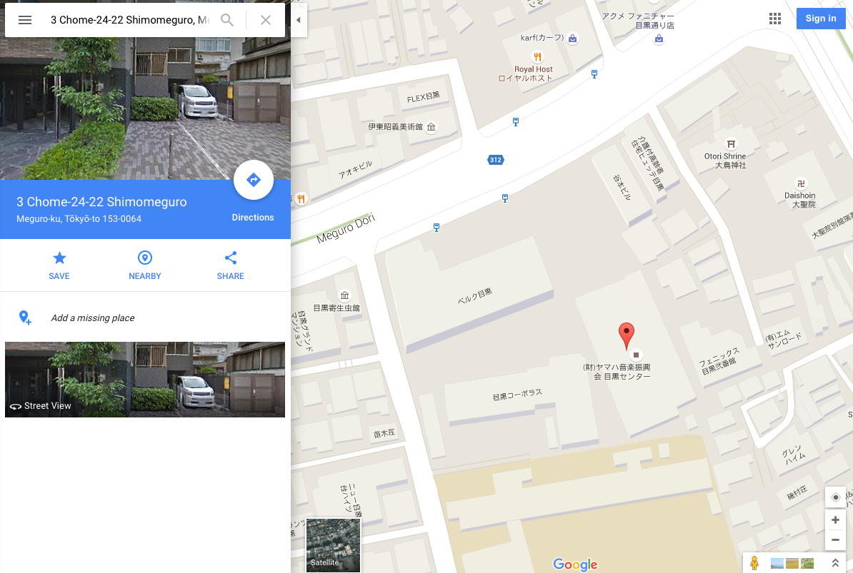 そして、会場であるという「ヤマハ音楽振興会本部」の場所を調べようと、Googleマップに「東京都目黒区下目黒3-24-22」と入れると、上のように、かつて何度も仕事で通った「カミヤスタジオ」に行く途中、目黒から坂道を下りて来た白鳥神社のあたり、と判明した。 すぐ隣りには、有名な 目黒寄生虫館 があるが、ここには行かないつもりである(^_^;)。