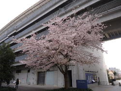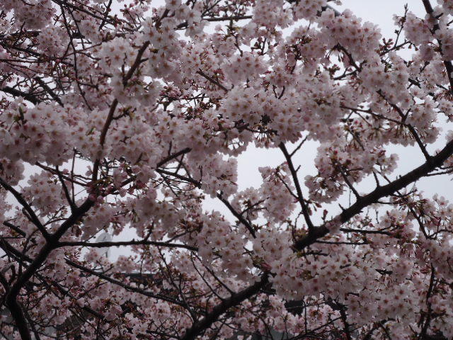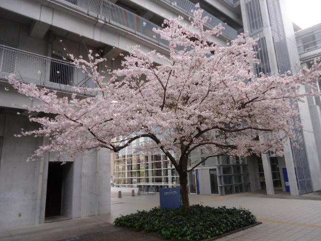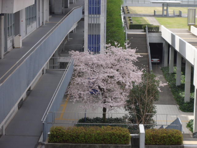 午後には1時から3時前までと、リハーサルが終ってから1時間ほどかけて、前田さんと2人で こんな作業 を51台のiMacに対して粛々と進めた。 そして、へとへとになって研究室に戻る途中で、なんとか明日の入学式まで持ちこたえた桜を撮った。