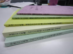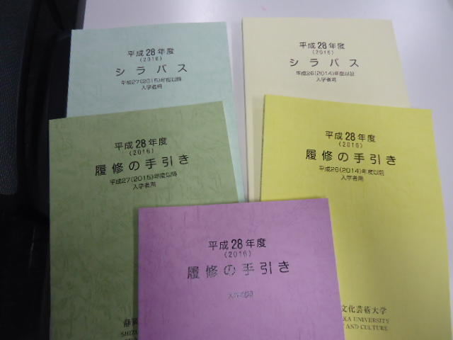 作業を終えて研究室に戻る際に事務局に立ち寄ると、以下のように新学期の「履修の手引き」と「シラバス」が、ドカンと配られていた。 いよいよ最後のメディア造形学科が3回生と4回生、そして新しいデザイン学科が1回生と2回生、と移行期間も山場の2年間の前半に差し掛かってきた。 これが来ると、いよいよ新学科だぁ・・・と引き締まってくる。