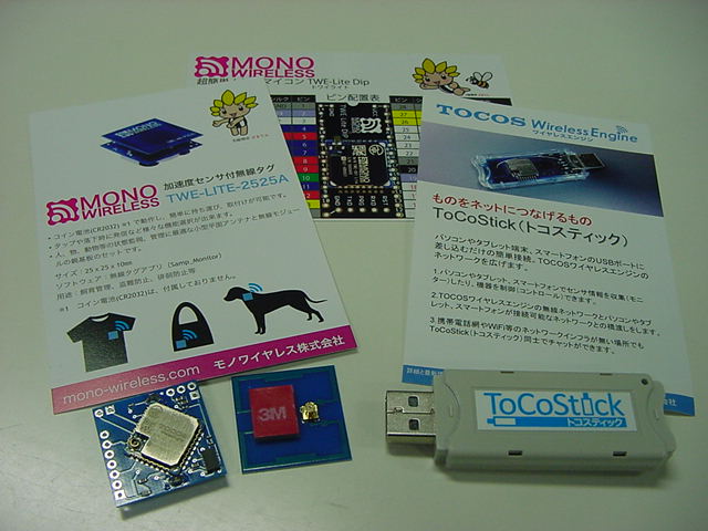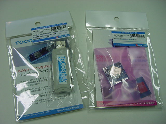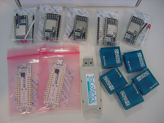 そして午後のわずかな時間、この日記の「2016年03月23日(水)」でチラッと遊んでいた、上の一連のブツと対面した。 新学期になってようやく稼働した研究費で購入した第1陣である。 そして、 これ とか これ とか これ とか これ とか これ とか これ とか これ とか これ とか これ とか これ とか これ とか、あちこち調べてみたが、なかなかに長い道のりであることが判明してきた。 まずはUSB「TokoStick」というのは旧版で、ところが新版の「MonoStick」はまだ販売されていない。 そしてプログラミング環境はEclipseの上だということでこの環境設定が必要なこと、さらにファームウェアの書き込みはMacOSXの場合にはPython環境で走る「jenprogフラッシュプログラマ」を使う、とのことであった。 十分に時間のある(暇がある)時であればまずまず面白い道程だが、この新学期に細切れで取り組むのは得策ではなさそうだ。 とりあえず「MonoStick」が購入できる状態になったら業者から連絡が来るので、これは当面、棚上げすることにした。