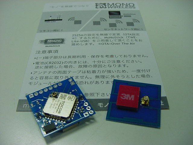 ところで上の左はというと、実は昨日の午後にちょっとサプライズがあった。 早目に帰宅してホームセンターに行く途中で立ち寄ったのは、マルツ電波浜松店である。 かつては1階も2階も全てマルツだったのだが、ヤマダ電気とか近くにコジマ電気ができたためにマルツ電波はここの1階の家電売り場を畳んでリサイクルショップにしたのだが、ここに奥さんが段ボール一杯の古着などを売りに行った。 そこで値付け鑑定の待ち時間に、2階のエレキショップに行ったところ、なんと販売未定であった筈の「MonoStick」が並んでいた。 そこで、実験用のユニバーサル基板なども仕入れつつこれをゲットして(新学期なので教員証を見せて研究費で購入)、今朝には研究室で実験できることになったのだ。 旧版の「TokoStick」では上手くいかなかったが、この「MonoStick」を刺すと、あっさりと以下の手順で通信できてしまった、というのが上の左なのである。