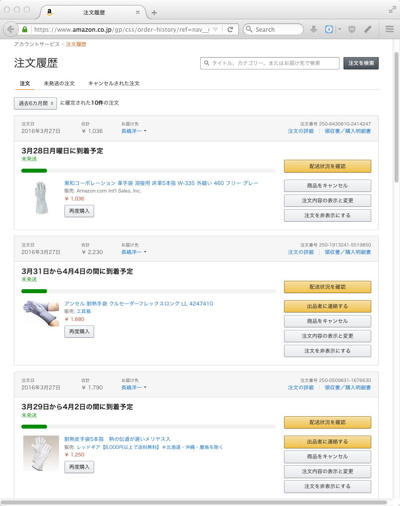 そして朝イチでまず、上のようにアマゾンに注文した。 昨日の夕方にカーマと向かいの100均を1時間ほどかけて彷徨したのだが、結局、「200℃以上に耐えられる」という2種類の分厚い業務用軍手を仕入れてきただけだった。 知覚コロキウムの冒頭内職で、リニア振動アクチュエータをバイポーラで連続駆動すると、かなりの発熱で皮膚に当てていられないので、断熱しつつ振動を伝えるための「何か」を探したわけだが、結局は「熱に強い軍手」だったのである。 そこでネットで「手袋」「耐熱」と調べると、上のような色々があったので、とりあえず今日は予備的に実験しつつ、最終的なスタイルをさらに模索することにした。