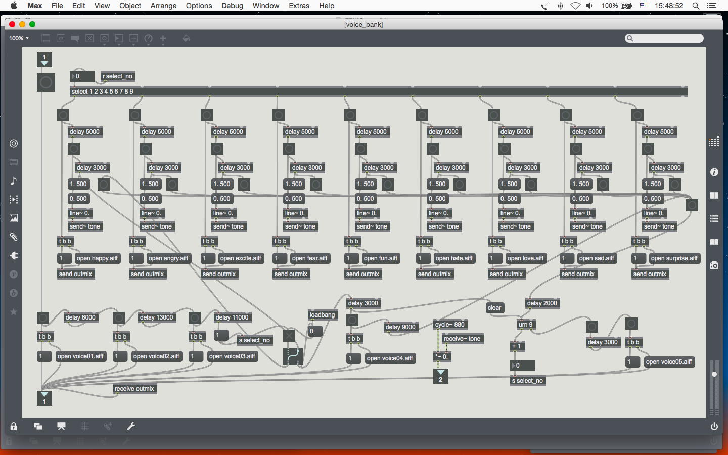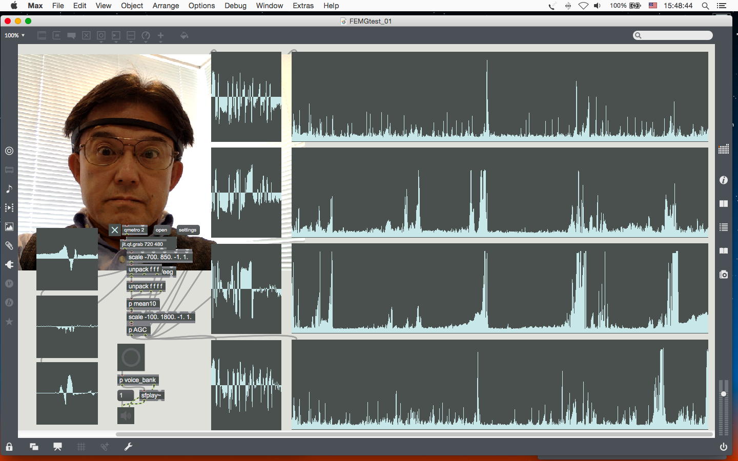 ・・・そして午前から午後までタップリかけて、上のような実験Maxパッチも完成して、何より実験の様子を撮って このような動画 としてYouTubeに上げてしまい、 カメラレディ の提出まで完了してしまった。 これは実はなかなかに大変なことで、何より自分が目をつぶっていないといけないので、まずは「実験用読み上げ音声ソフト」のダウンロードから始めたのである。 これはもう、博多ではこのYouTubeと同じことをデモって見せれば十分であり、春休みのたった2日間で片付けたお仕事としては、なかなかの進展となった。