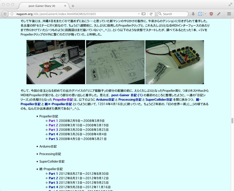 いよいよ週末から今期の学会発表出張シリーズも始まるので、ここを区切りとして、「post-Gainer日記」は終わりにしよう。 続きはどうなるか不明であるが、スグに直結せず、NIME2016と欧露ツアーを視野に入れたあたりで「Max7日記」でも始めようかな。