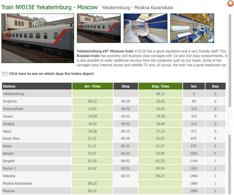 するとなんと、「 シベリア鉄道 」にDenisが敢然と食い付いてきた(^_^)。 僕は「セキュリティもあるのでFirst Classで」と書いたが、上のように、Denisが薦める、エカテリンブルク始発モスクワ行きのシベリア鉄道の特急寝台列車は、250ドルほどで、およそ25時間でモスクワに到着するという。 彼自身、Moscowに行くには、これまでは列車がほとんどだったのだという。 ここにきて突然に、「乗り鉄」にとって夢のまた夢である、「シベリア鉄道」とは、凄いことになってきた。 ちょうどロシアでのイベント企画が当初よりも減ってきたので、彼に「頑張り過ぎなくていいよ」と書いただけだったのだが、こうなると俄然、目的として急浮上である。