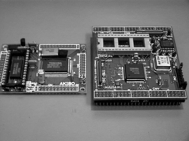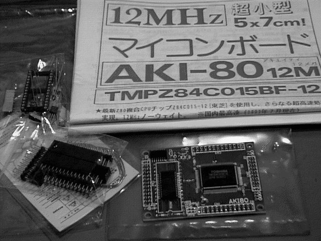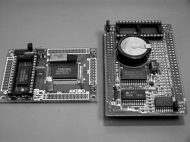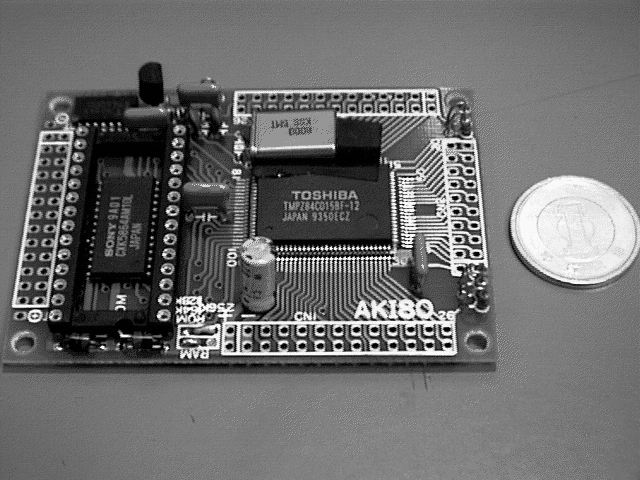 AKI-80は東芝のTMP-015を中核に置いたカードマイコンです。内蔵の2ポートのシリアル