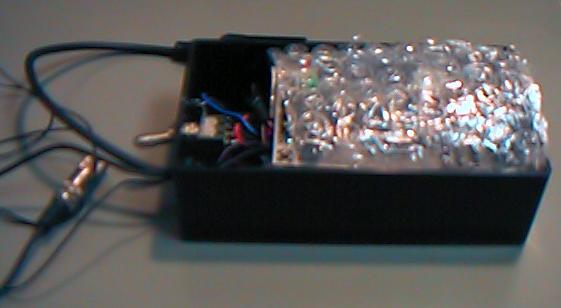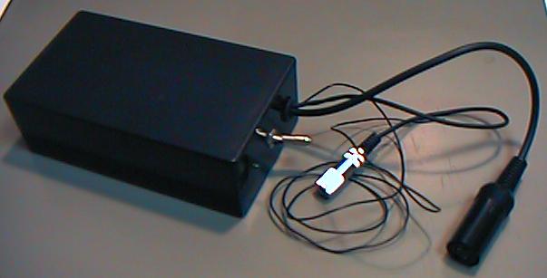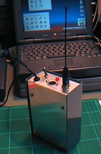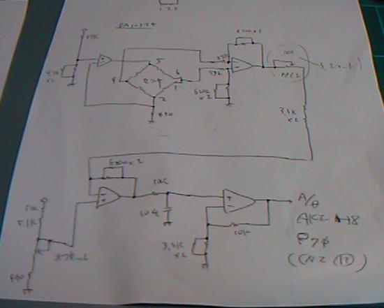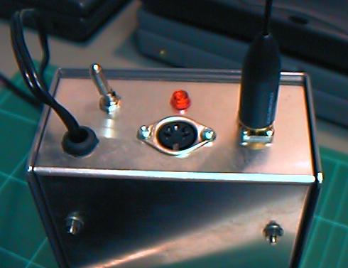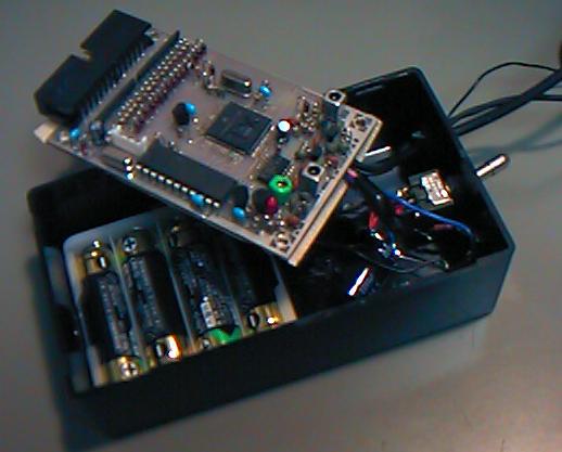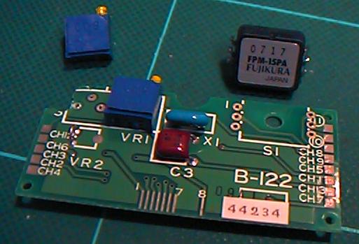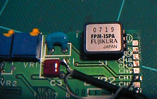 ここで、電源を与えて、ポテンションを回してオフセットを調整すると、 圧力情報としては0V-4Vの範囲でプラスマイナスが程良く出てくれました。 ワイヤードのセンサでは、これをAKI-H8のA/D入力に与えれば、それで センサ-MIDIシステムは完成するのですが、ここではワイヤレスですので、 もう1ステップが必要となります。