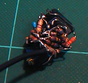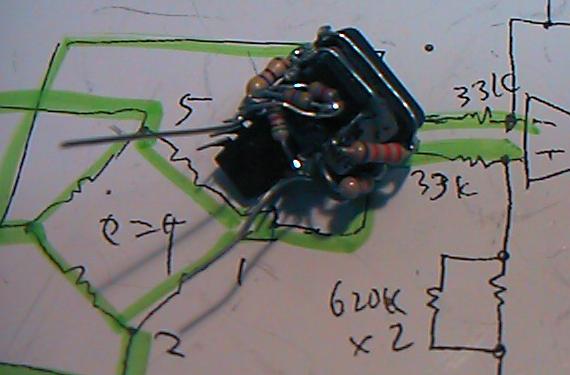回路図とまったく同じものです。ただし、超小型空中配線をしていくので、こうやって