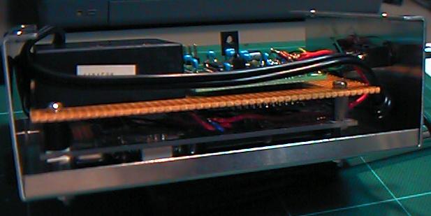 ...ということで、ここから先は、まだ先に東野さんに送ったセンサの感度の チェックの連絡を待っているところなので、ストップです。もっとも、 あとはAKI-H8のD/A出力ポートからOPアンプ1個でKyma用信号を出す だけで、AKI-H8のソフトも既に完成しているので(テーブルのパラメータ だけ微調整)、東野さんのメイルをもらえば1-2時間の作業というわけです。 このセンサは、2000-2001年の東野さん作品のプロジェクトで活躍する ことでしょう。(^_^) |