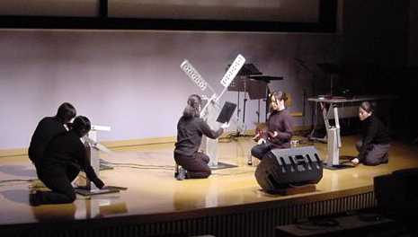 以下、その公演の模様の一部の写真とともに、既にメディアアートフェスティバルのコンサートのところで解説した"tegoto"以外の作品の概要を簡単に紹介する。