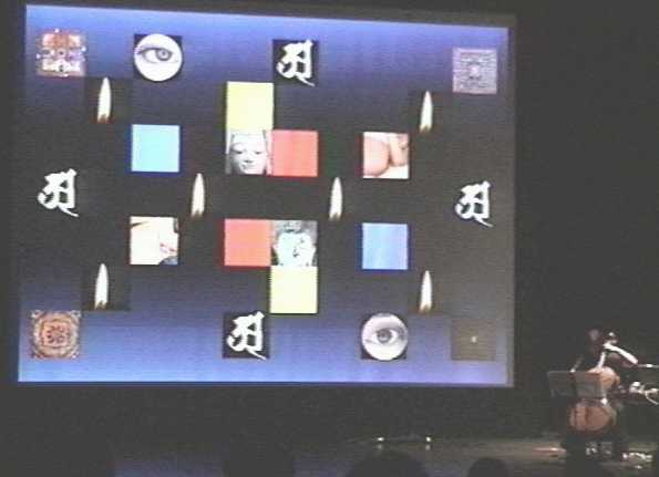 あらかじめ制作された映像/音響パートをスクリーンに投射しつつ、ライブでチェロ演奏家の演奏がこれに絡むスタイルの作品。インタラクティブ性を強く意識して作曲された。