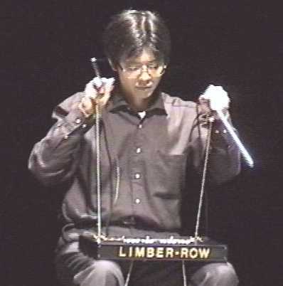作曲者自身が制作し演奏する世界に一つの楽器"Limber-Row"によるライブ演奏。両手と両足の角度を制御し、さらに両手のバトンによって電子楽器の全ての演奏情報を生成した。