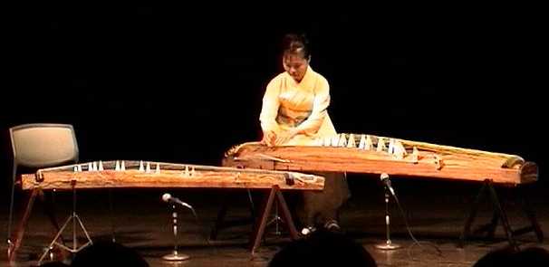 ステージ上での17絃箏/13絃箏の演奏をライブサンプリングし、その場で音響信号処理とともに掛け合いのパートナー音響パートとして生成するシステムにより、「一人即興合奏」を目指した作品。