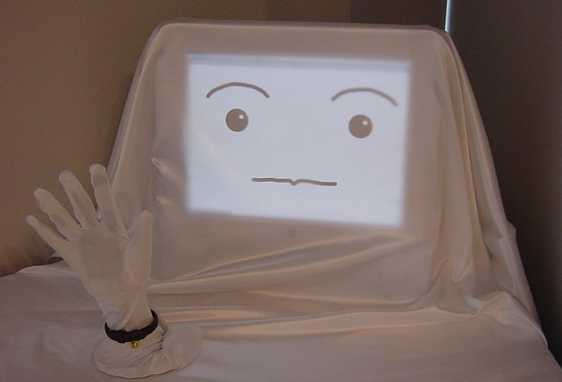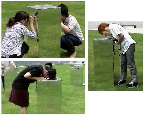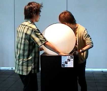 暗闇から覗き込む来場者の顔が赤外線CCDカメラで撮影されて液晶表示され、幽かなサウンドが奏でられる渋い作品。