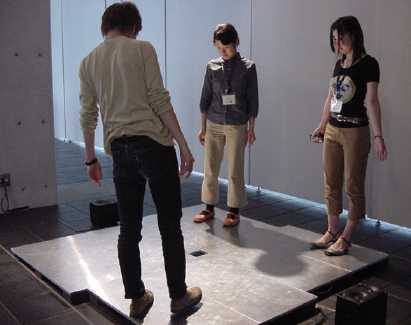 「床」の姿のセンサと小窓のディスプレイ、そして超低周波サウンドにより構成した作品。