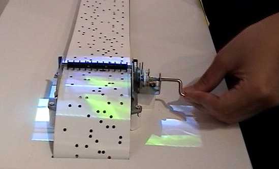 ロール式オルゴールの上にプロジェクタから映像を投射し、オルゴールを回すことで進展していく作品。