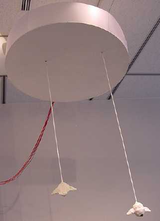 天井から釣り下げられた「虫」は周囲の物音に反応し、人が近付くと糸をたぐって逃げ、しばらくすると下りてくる。