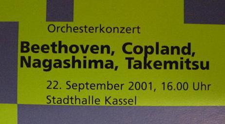 筆者はさらに、オーケストラコンサートでの曲目「ノベンバー・ステップス」の尺八を演奏する、京都の大師範・三好芫山氏とともに、筆者の作品を演奏する笙奏者・東野珠実氏、さらにドイツ各都市でのアンサンブルコンサートにおいて箏を演奏する三好晃子氏を含む日本人スタッフをまとめる役割も依頼され、全員の渡航費は国際交流基金から助成された。以下はその国際交流基金への申請書類からの抜粋であるが、本企画の目的と意義の理解に有効なので転載する。