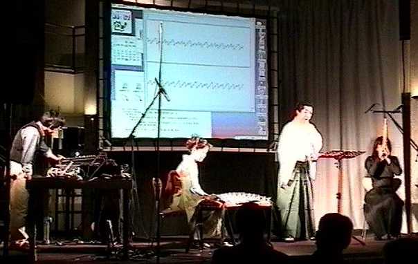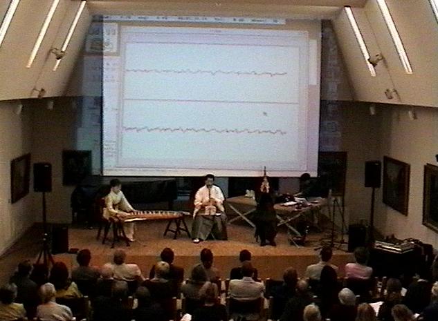 アルゴリズム作曲の手法であらかじめ制作した背景音響パートCDのもとで、尺八・笙・箏のそれぞれが即興とともにセッションする、というコンセプトの作品。筆者はリアルタイム音響生成ソフトSuperColliderをトラックボールで「演奏」してセッションに参加した。