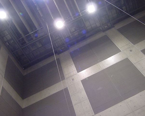 [2] 「瞑想空間」の可動バトンに、取り外し可能な(1)複数の照明機器、(2)ロボットアーム様の可動装置を設置し、作品展示支援システムと統合化されたコンピュータ制御により、ダイナミックなリアルタイム照明制御を実現し、また動的オブジェとしての演出を実現するためのシステムの開発を目指した実験を行う。