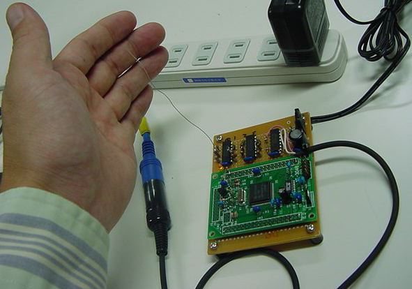 図4は、小型の「テルミン」型センサとして開発したモジュールである[18]。任意の電極を接続すると、非接触/軽微な接触の状態をセンシングしてMIDI化する。SUAC学生のインスタレーション作品(触れる造形)に利用した事例もある。