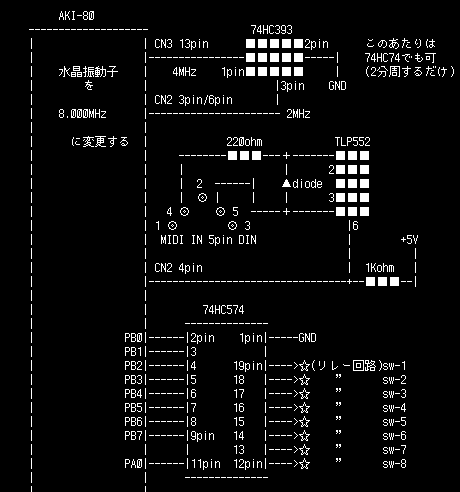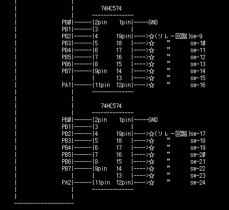 これは、たとえば「AKI-80のPB0は、3個の74HC574の2ピンに芋蔓式に