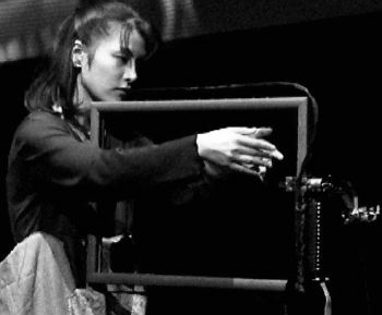・システムは、作曲の一部として長嶋の製作したオリジナルマシン(★印)を含めて、以下のように構成した。Performerの6箇所の関節の曲げをセンシングするMIBURI-sensor★、この情報を受けてシステム全体を制御するMac内のMAXパッチ、その出力を分配するMIDIスルーBox★とMIDIフィルタ★、CGを切り替えるMac内のリアルタイム画像処理ソフトImage/ine、リアルタイム音響信号処理システムKyma、GM音源SC-55、MIDI制御ビデオスイッチャ★、PAとプロジェクタ。
