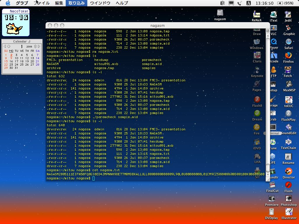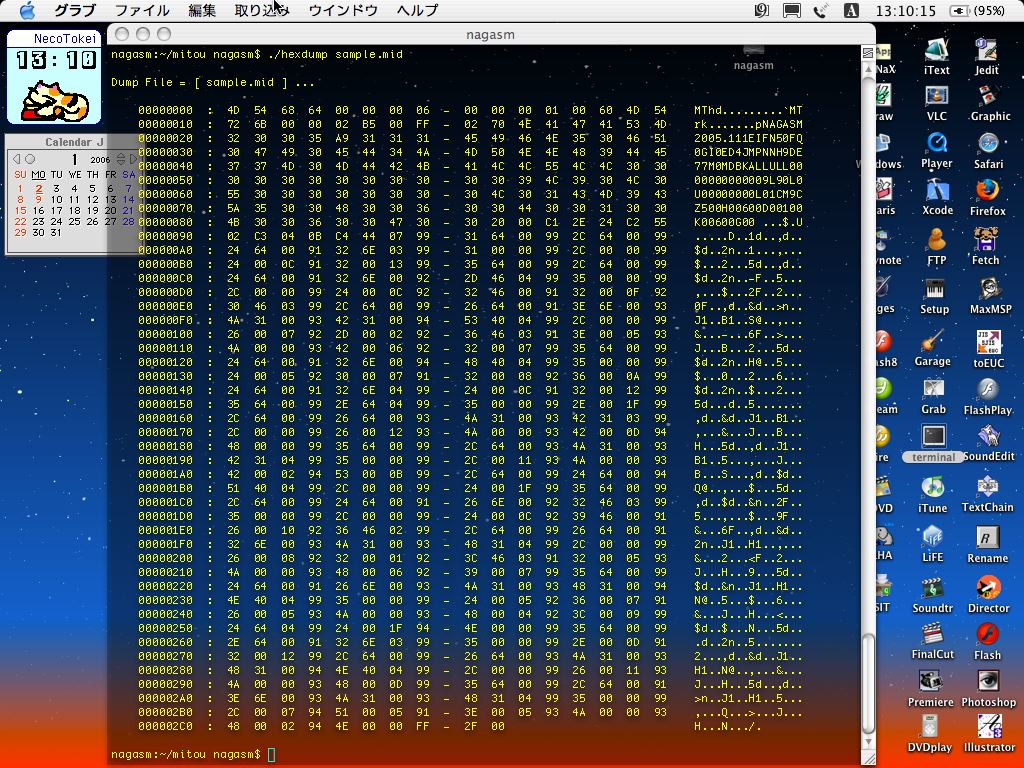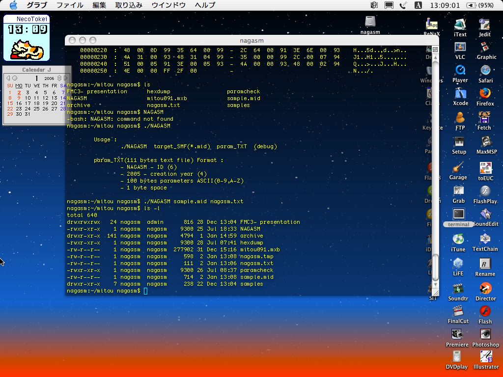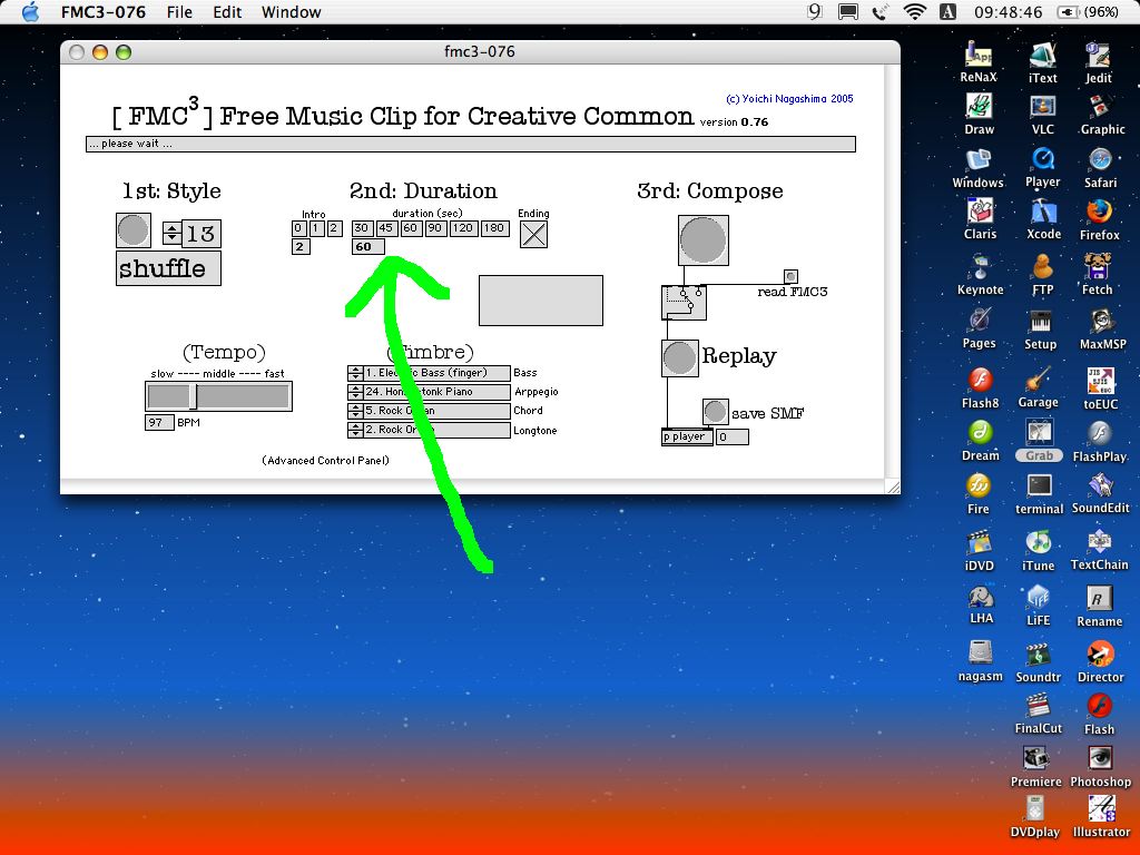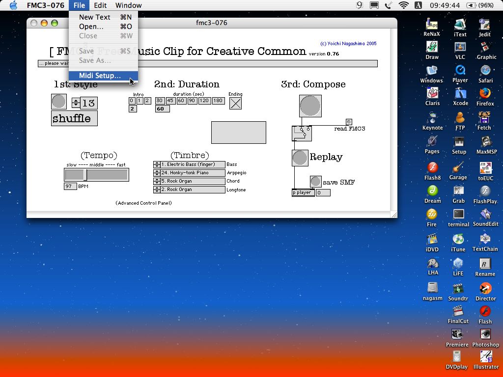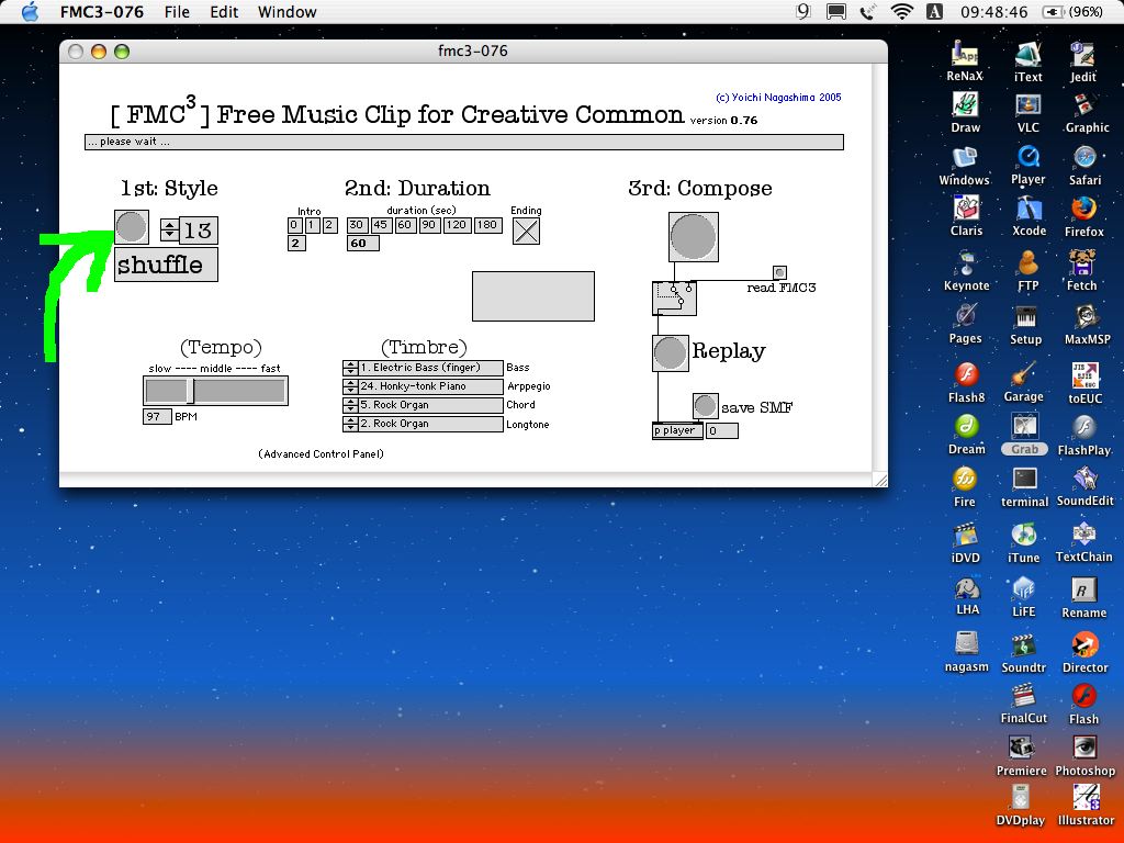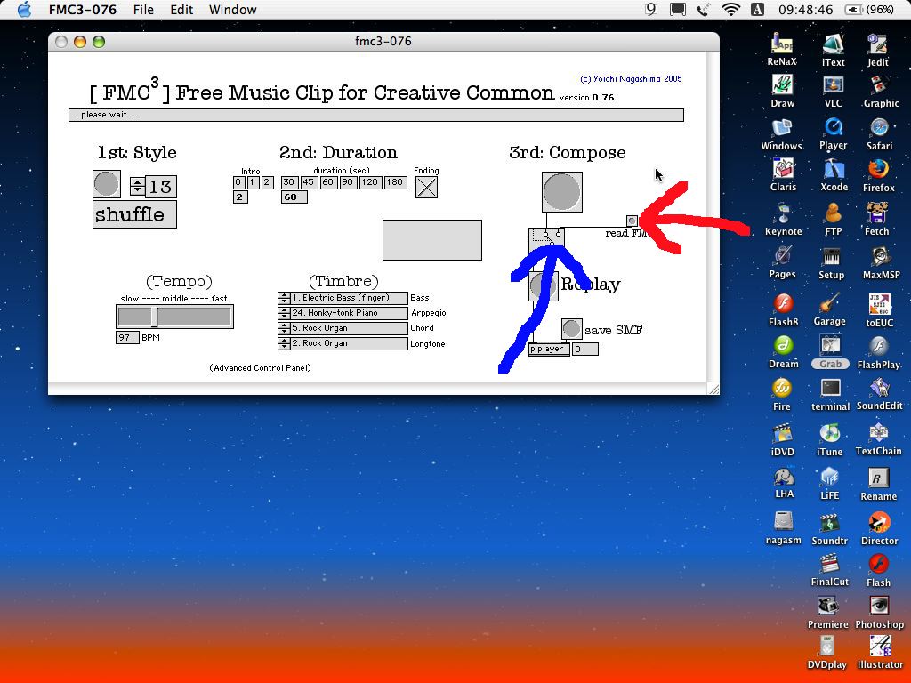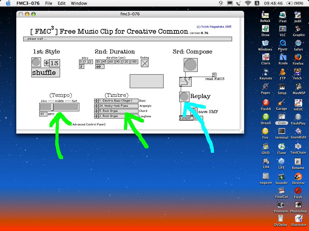 サンプルから選ぶより、生成プログラムをダウンロード/インストールして、 自分の手元でどんどんオリジナルのFMC3を作ってみたい、という人は (2)「自分の手元でFMC3を生成する」へどうぞ。 このフリーソフトはMacintosh(OSX)版と、WindowsXP版(ただし若干の外付け装置が必要)とがあります。