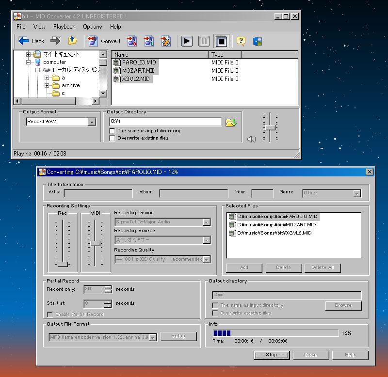 作曲やアレンジに興味があり、生成されたFMC3のMP3サウンドそのままでは飽き足らず、 より本格的にMIDIデータをアレンジしたりサウンドにエフェクトを加えたり、とさらに仕上げたい人は (4)「FMC3をさらにアレンジする」へどうぞ。