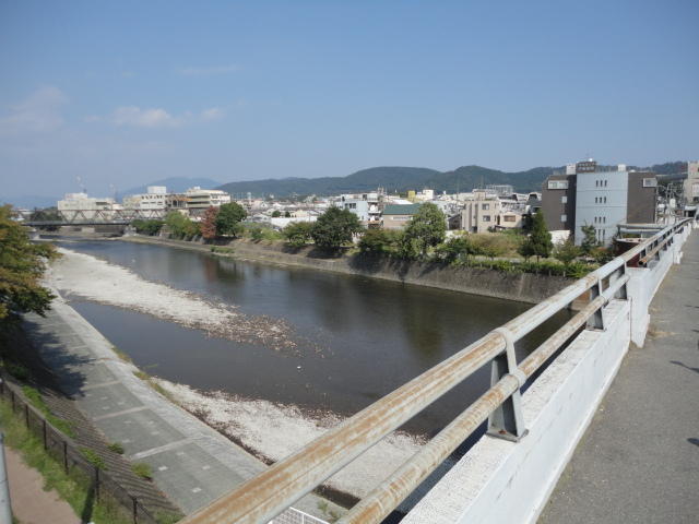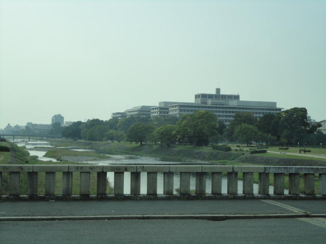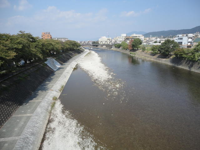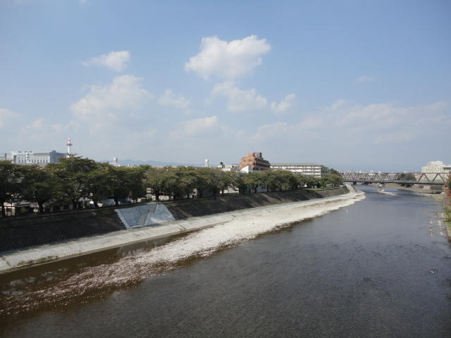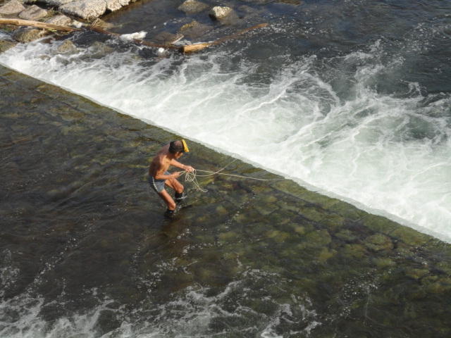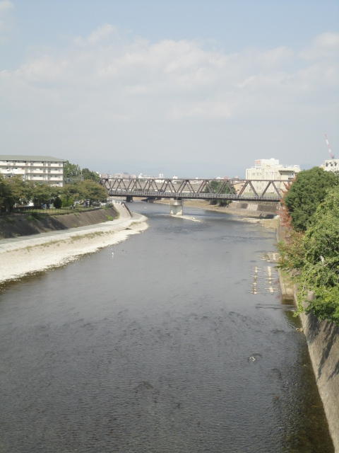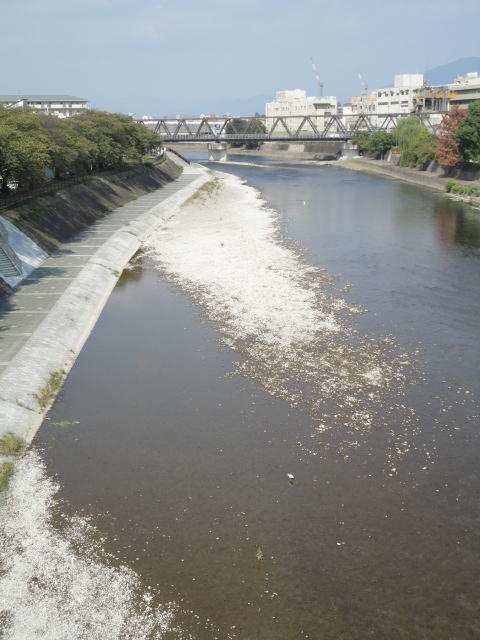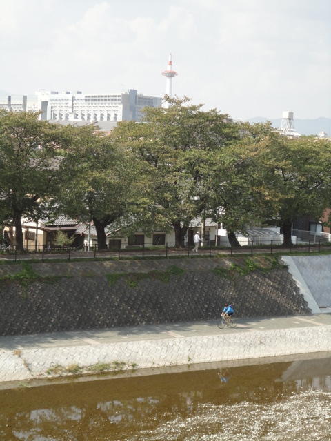 座禅体験が終わり、再びホテルに戻りました。 鴨川で釣りをしている人は多いのですが、川に入って投網を投げるおっさんがいました(^_^;)。
