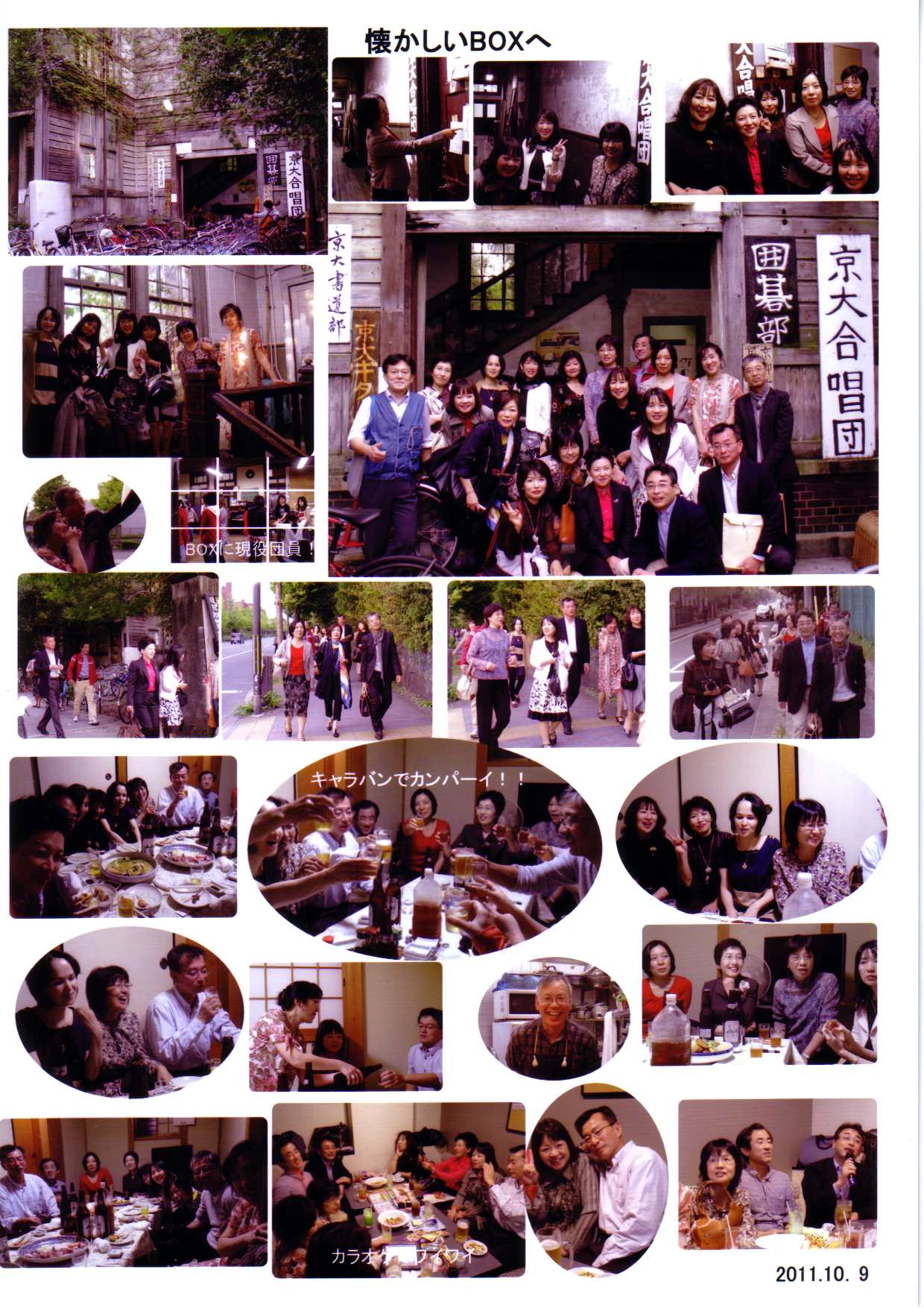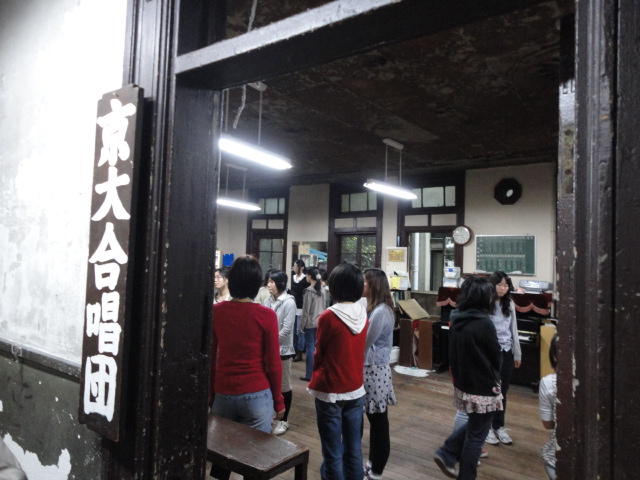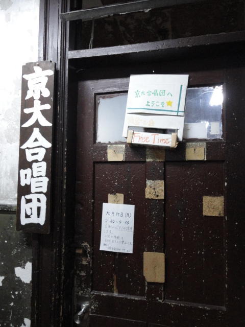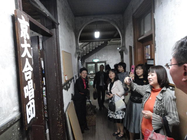 2次会は、懐かしい「きゃらばん」に行くことになり、せっかくなので京大合唱団Boxを覗こう、ということになりました。 タクシーで東山近衛に行きBoxを覗いてみると、この日はフラウエン(女声)が特別練習をしていました。 向かいにあった京大オケBoxの建物は火事で無くなっていました。