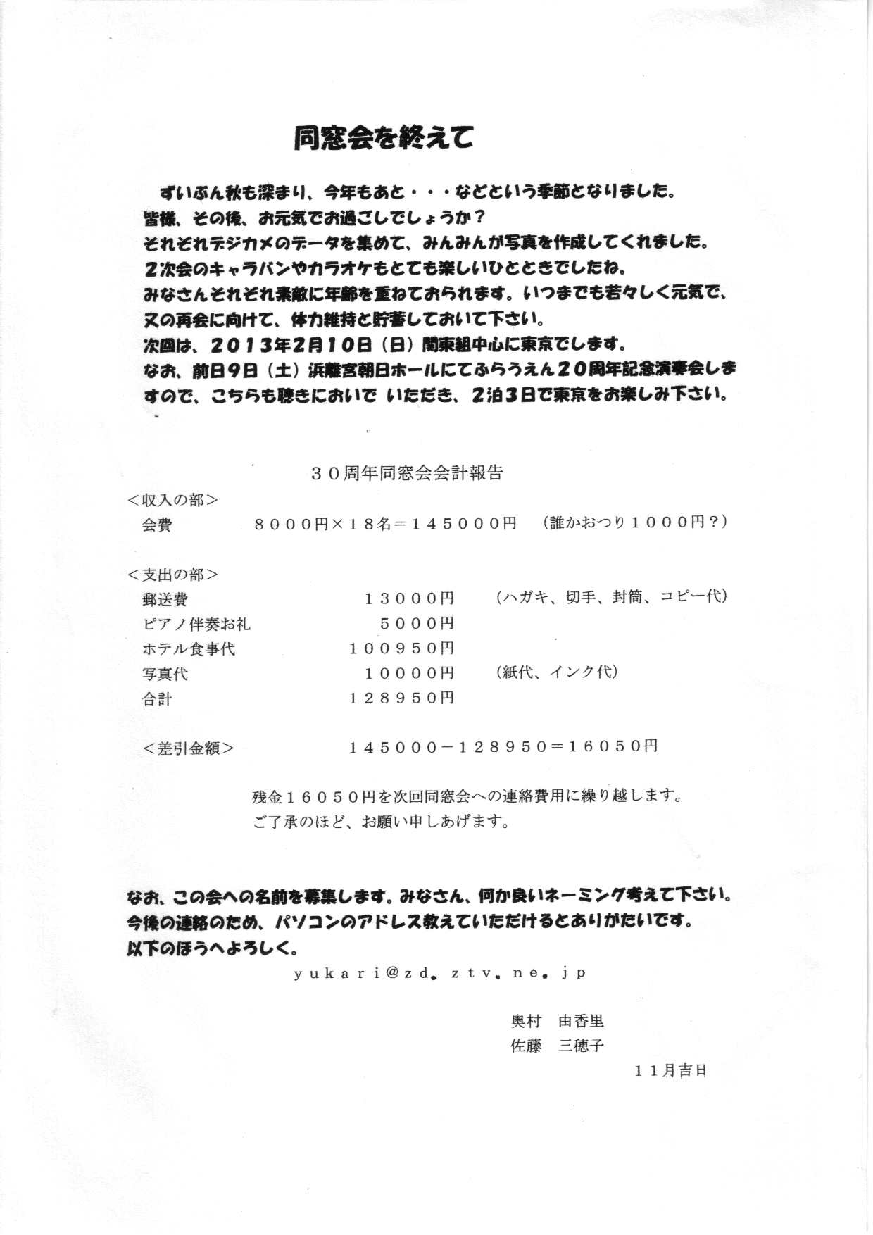 ほとんど全ての仲間が30年ぶりの再会、という同窓会の模様です(^_^)。 要するにおっさんとおばさんの集まりですが、皆んなそれぞれ、30年の人生を加えて、いいカンジでした。
