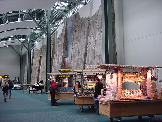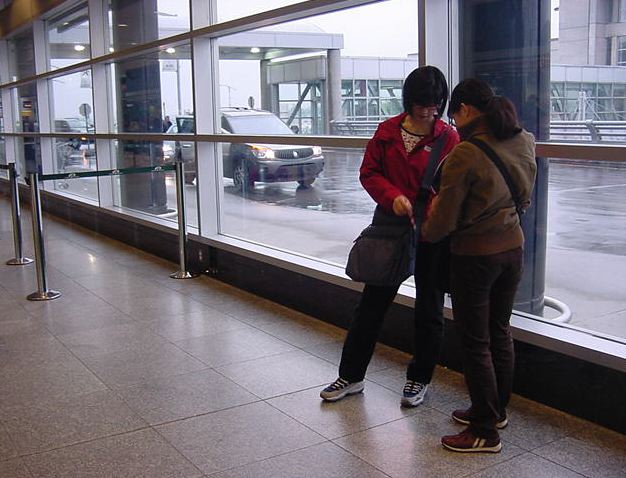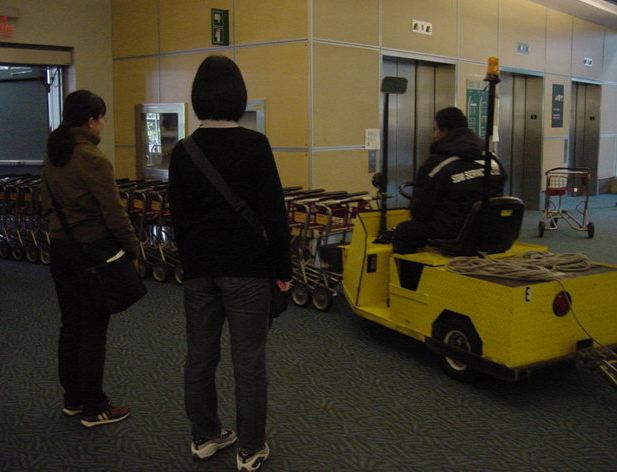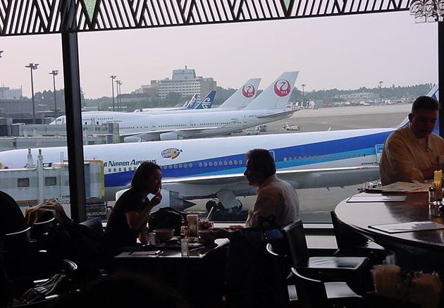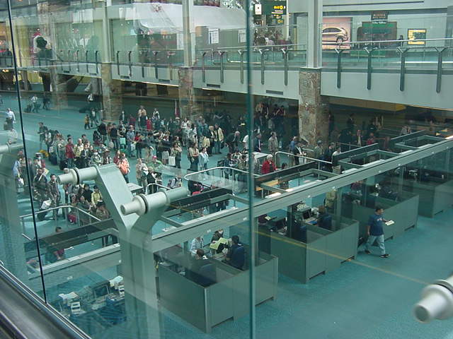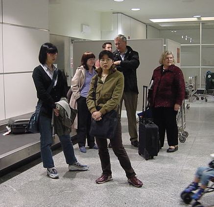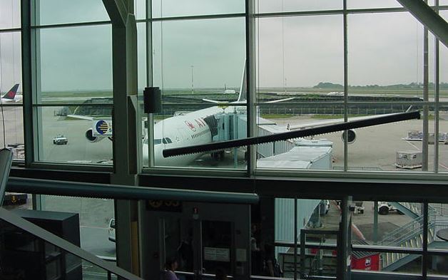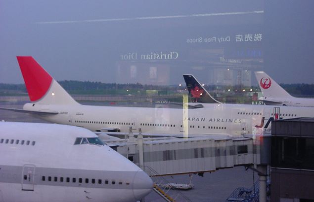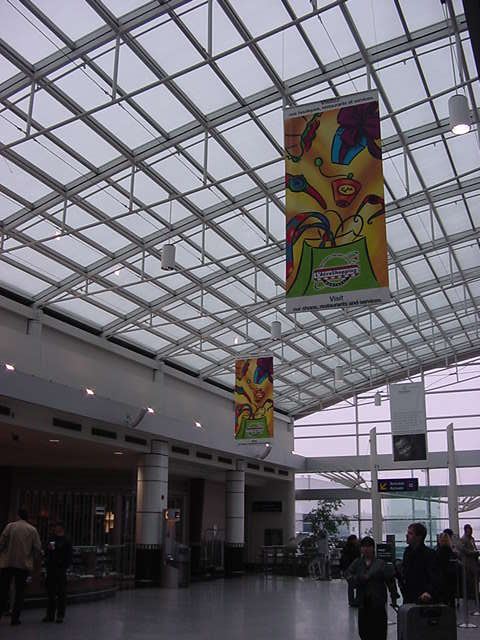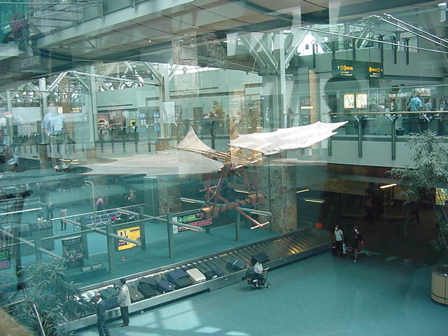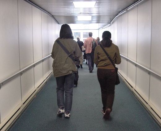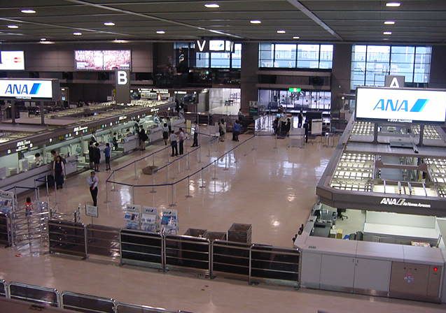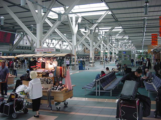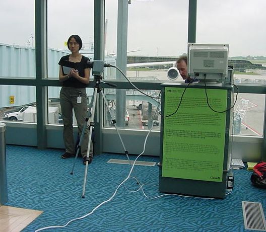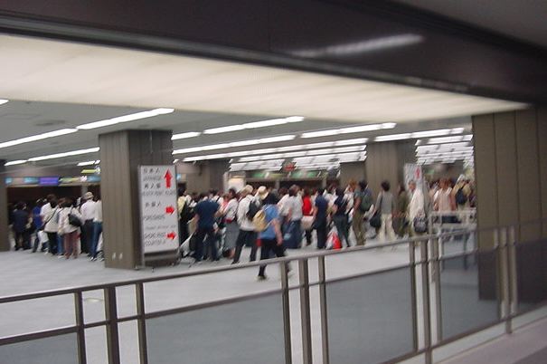当初はトロント経由でモントリオールのチケットを買ったのですが、トロントがWHOからSARSの指定を受けると、エアカナダは2日後には日本からトロントへのフライトを速攻で抹消しました。 その後、いったんWHO解除されてもフライトは10月まで復活せず、つまりリストラの格好の口実になった模様です。 それでバンクーバー経由に変更となって、空港でだいぶ待つことになり、僕はメイルをチェックしている間に、学生2人は散歩して写真を撮りました。 午後4時の繁忙期なのにこれだけ閑散とした成田空港は驚異的です。 ★ ★ ★ ★ ★ ★