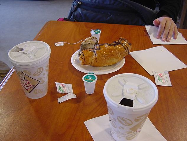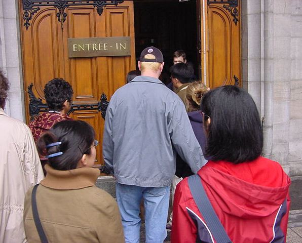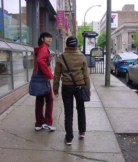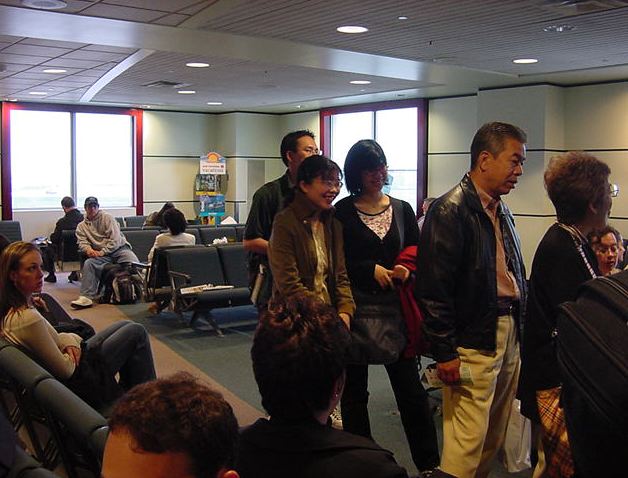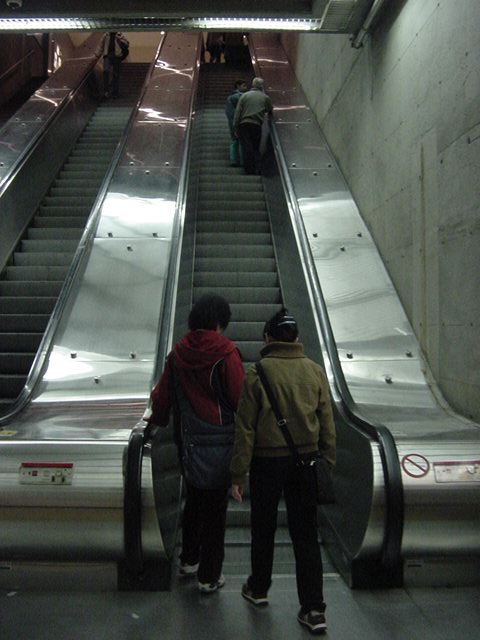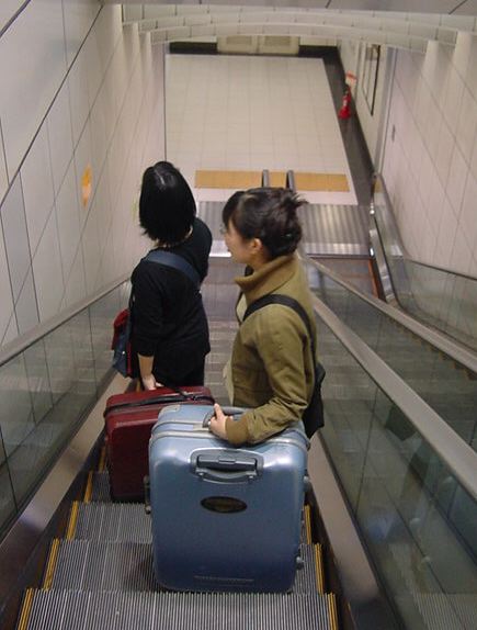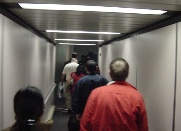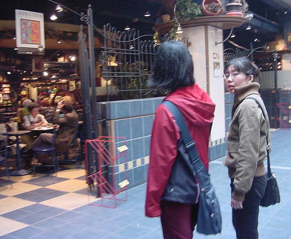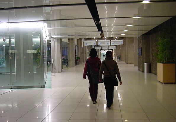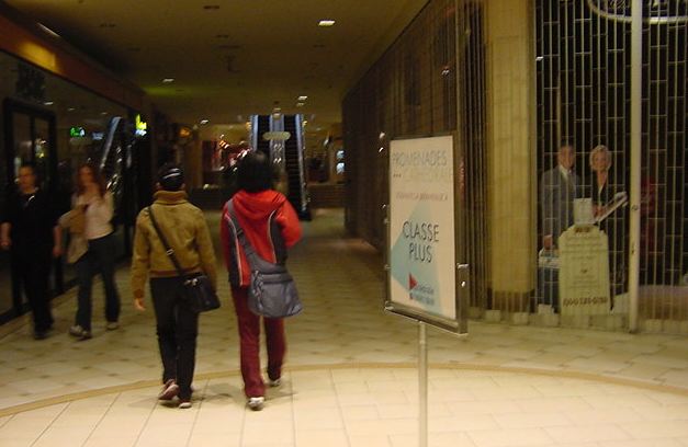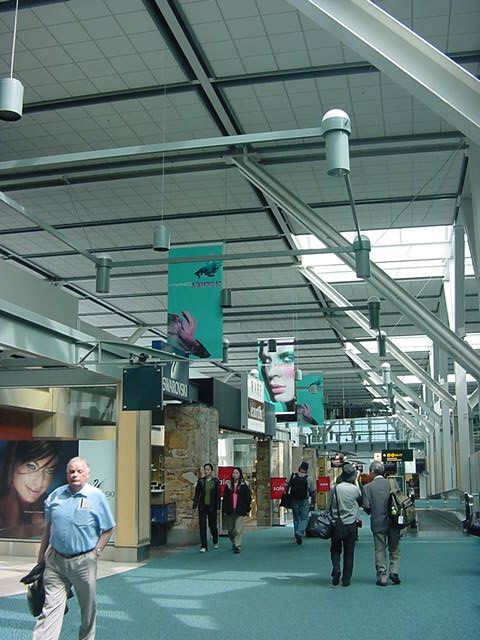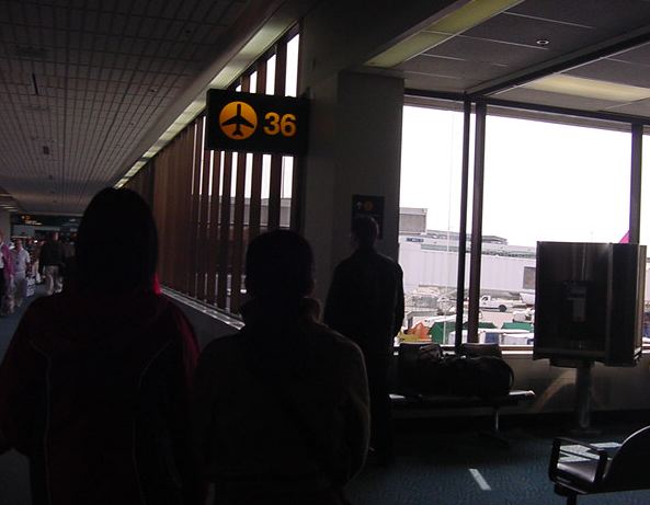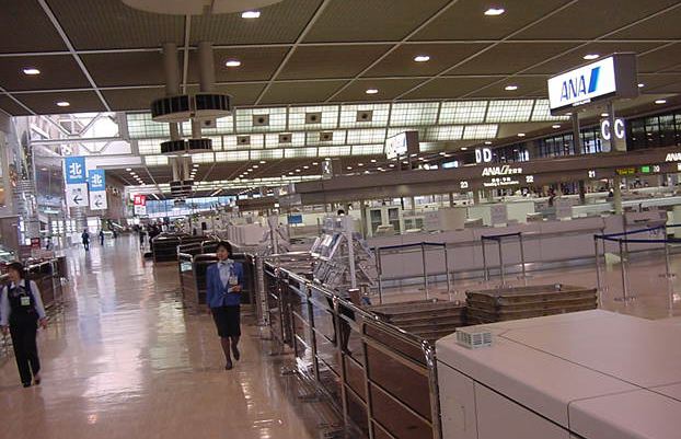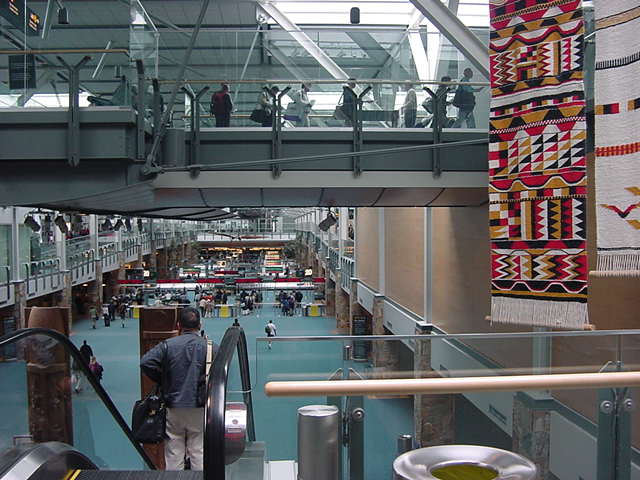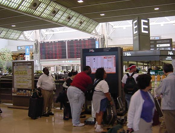 当初はトロント経由でモントリオールのチケットを買ったのですが、トロントがWHOからSARSの指定を受けると、エアカナダは2日後には日本からトロントへのフライトを速攻で抹消しました。 その後、いったんWHO解除されてもフライトは10月まで復活せず、つまりリストラの格好の口実になった模様です。 それでバンクーバー経由に変更となって、空港でだいぶ待つことになり、僕はメイルをチェックしている間に、学生2人は散歩して写真を撮りました。 午後4時の繁忙期なのにこれだけ閑散とした成田空港は驚異的です。 ★ ★ ★ ★ ★ ★