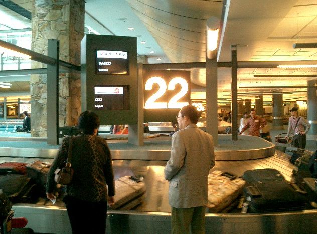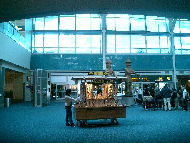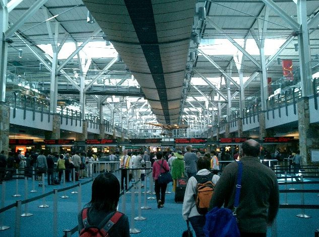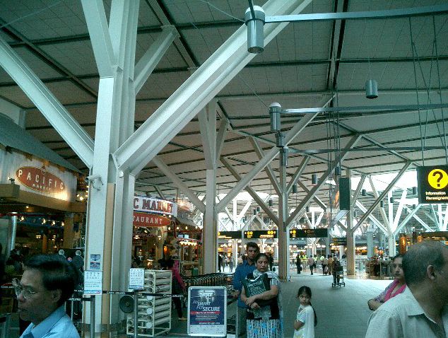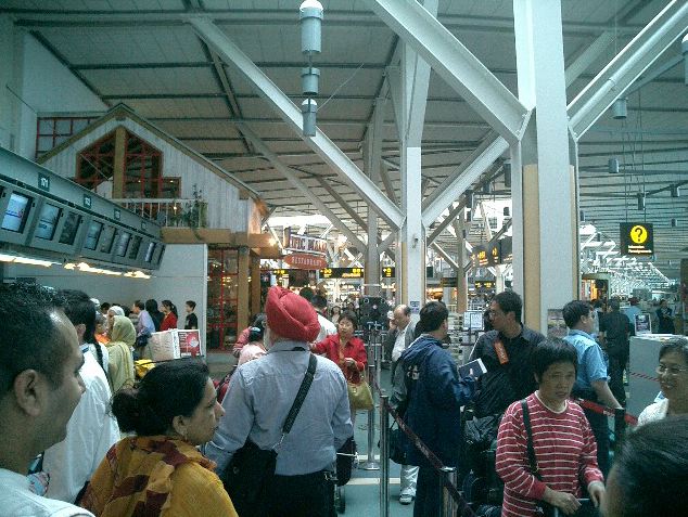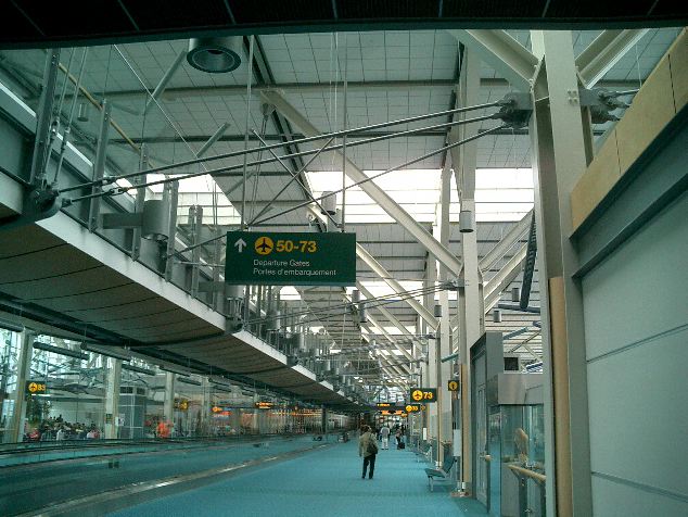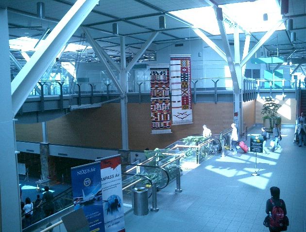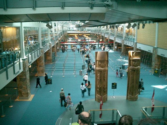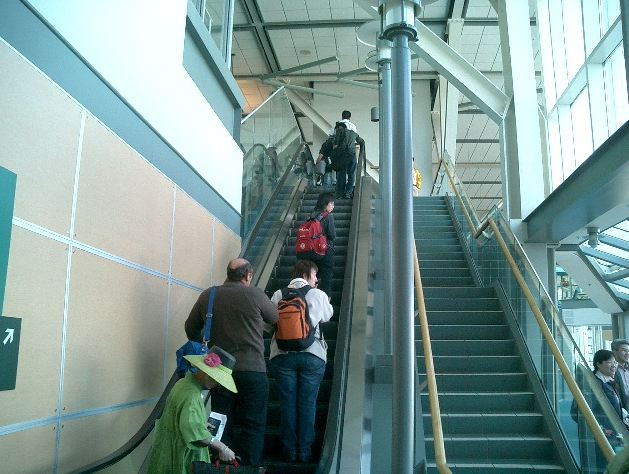 朝9時半に名古屋を飛び立ったのに、折り返しのフライトは夕方17時頃に東京上空を通過して(^_^;)、 バンクーバーに着いたのは、日本時間でもう26日の午前1時半でした。 ただし日付変更線を越えたので、現地到着時刻は、ちょうど名古屋出発と同じ、 「5月25日の午前9時半」でした。 入国審査までは、モントリオール行きにトランジットした NIME03 の時と同じ風景です。 ただし今回は、ここで空港から街に出ます。 ★ ★ ★ ★ ★ ★ ★ ★ ★ ★ ★ ★ ★ ★ ★ ★ ★ ★ ★ ★ ★ ★ ★ ★ ★ ★ ★ ★