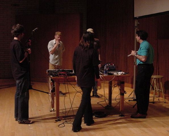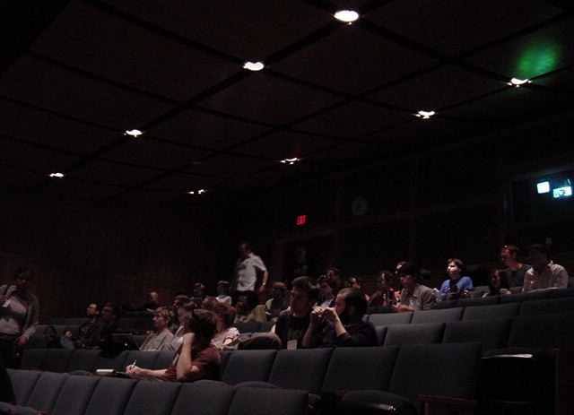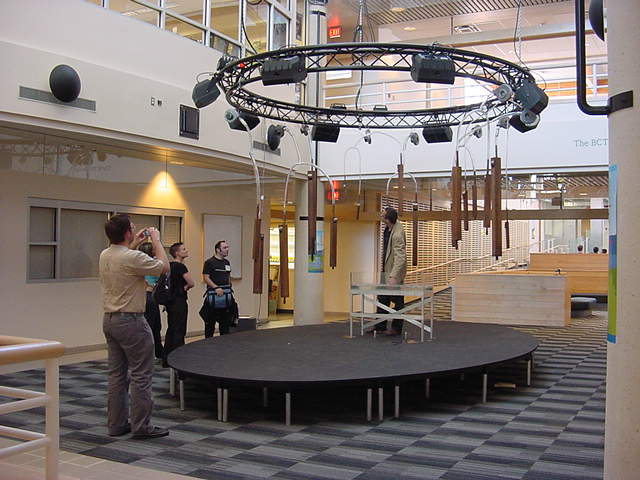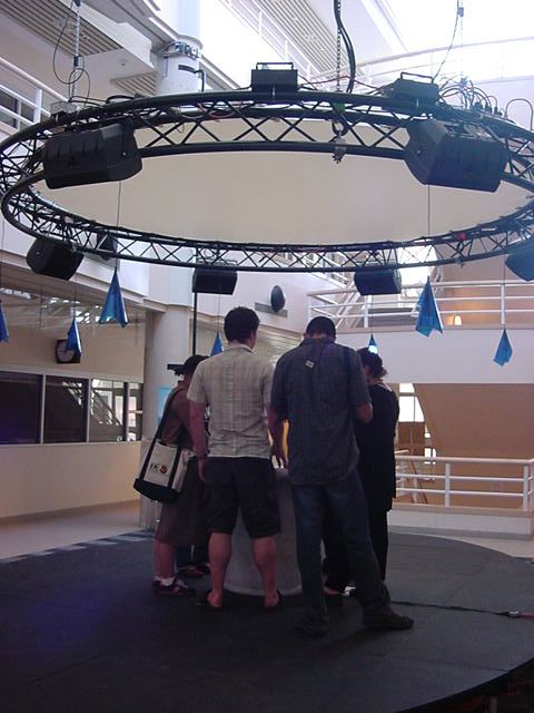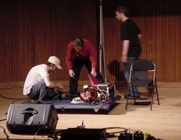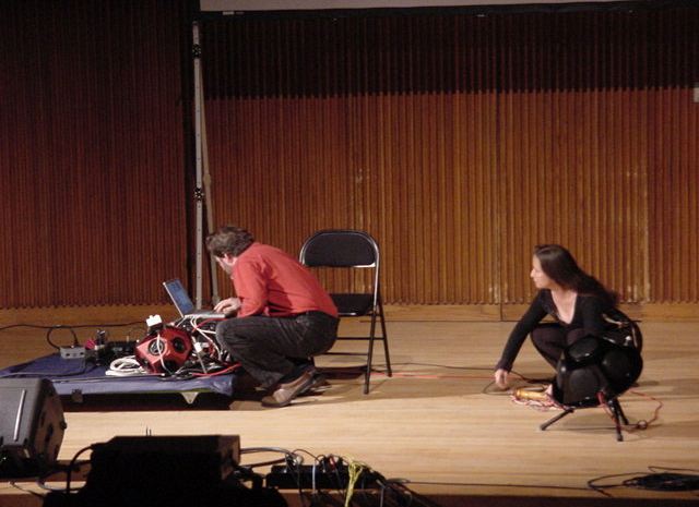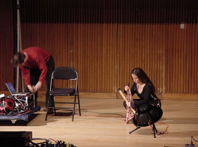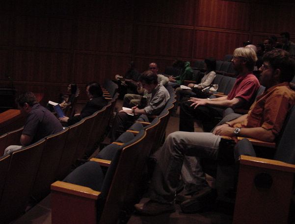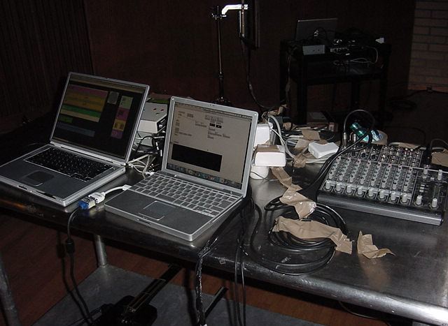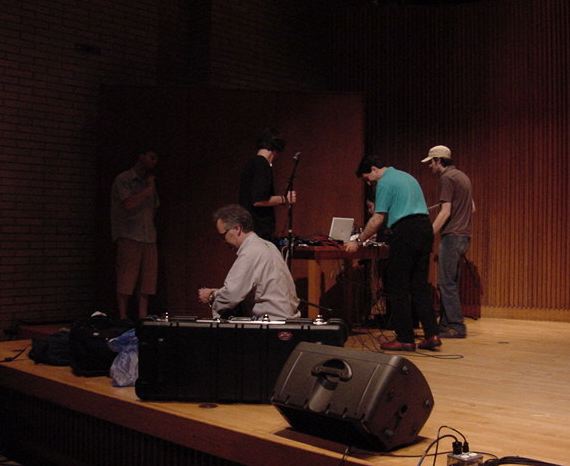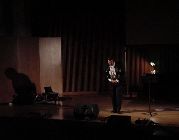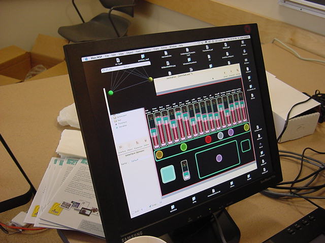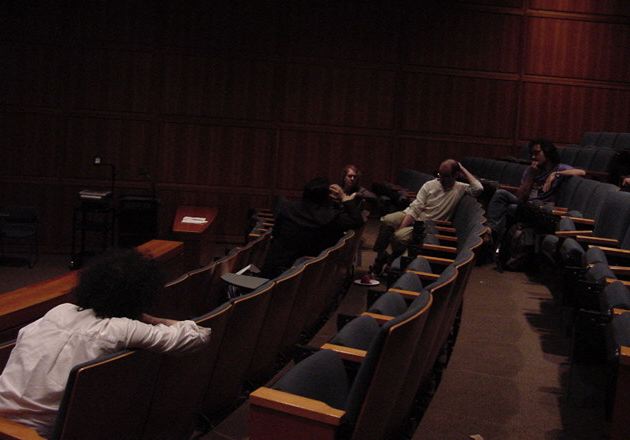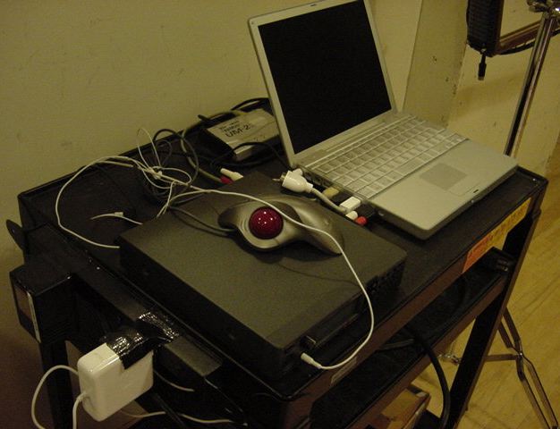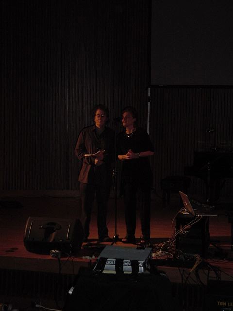 この日は晩のコンサートで本番の公演があり、リハーサルが11:30-12:30に予定されていました。 そこで午前のセッションはパスしてホールに向かい、まずはバックヤードでセッティングをして、 朝イチのリハーサルをたった一人、客席で楽しみました。 ビデオを撮ったので、写真は少しだけです。 ★ ★ ★ ★ ★ ★ ★ ★ ★いよいよ自分のリハです。 NIME03 のコンサートの時には、学生が2人、付き人として手伝ってくれたのですが、 今回は一人だけだったので、リハ中の記録はありません。 持参したSC-55mkIIのライン出力の片方が死んでしまっていたので、 Max/MSPの出力とミックスした全てをヘッドホン端子からPAに出す、 という苦渋の選択となりました。 ★ ★ ★ ★ ★ ★ ★ ★ ★ ★ ★ ★ ★ ★ ★ ★