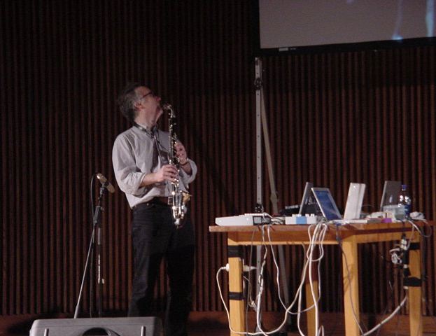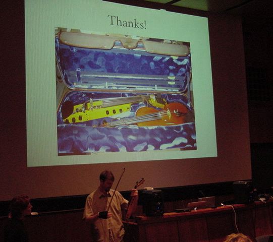 早めにバンケットを抜けて、まだ直前までリハをしているホールに入りました。 Dannenbergのバグパイプ自動演奏ロボットは、ヤマハのシーケンサQY-30でした。 本番の記録はまったくナシです。小林さんが撮ってくれたビデオに全てを託しました。 ★ ★ ★ ★ ★ ★ ★ ★ ★ ★ ★ ★ ★ ★ ★ ★ ★ ★ ★ ★ ★