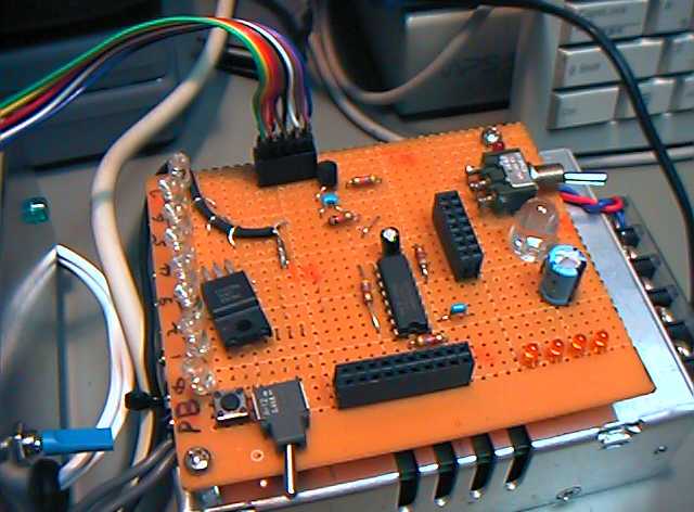 マニュアルの回路図を参考に自作したAKI-H8ライタです。これについて