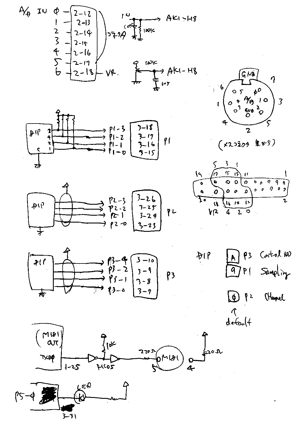 いちばん下の部分は、MIDI出力とパネルLEDの点滅のためのポートです。