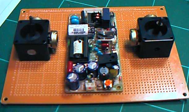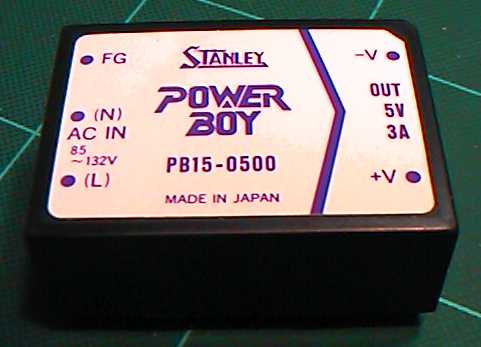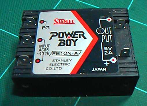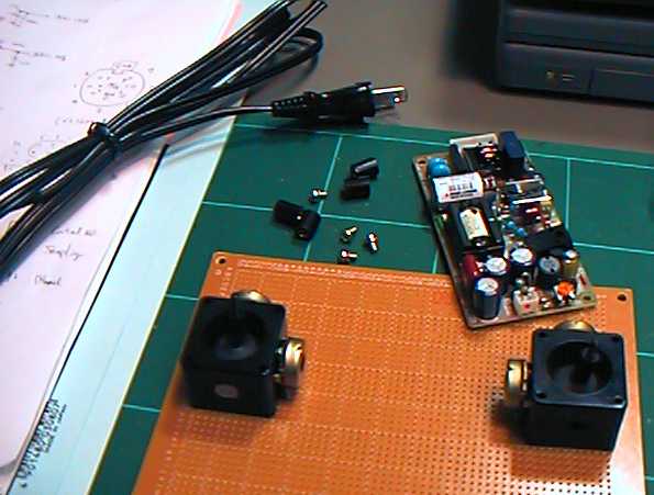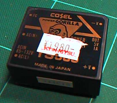 ここで、せっかくなので、電源について解説しておきましょう。 このアナログボードでは、システムに0V-5Vの電圧を出すので、 +5Vの標準電源電圧が得られればいいことになります。 これ は、共立電子で現品のみ1200円ぐらい、と棚に並んでいたのを まとめ買いしたもので、+5V2Aのスイッチング電源ですから、ちょっと スペックとしてはもったいないぐらいのものです。普通は+5Vで1-2A のスイッチングは3000円以上するので、秋葉原とか日本橋で1000円 ぐらいの出物があれば、重くてもゲットするというのが習性となって います。これも10個ゲットしました。(^_^;) 前回のボードで使ったのは、 こういう 普通の「ACアダプタ」です。これは「+6V」と書いてありますが、 負荷が軽いと+9Vぐらい出るので、ちょうどいいです。これは 内部は単なるトランスとダイオードと平滑コンデンサだけなので、 スイッチングのように電圧は安定していませんから、外部に 3端子レギュレータが必要となります。これは近所のマルツ電波で 1250円ぐらいでした。秋葉原でこういうのを捜すと、怪しいアジア製 ノーブランドが250円とかで積んであったりします。(^_^;) これ は、コーセルのゴリラというオンボードタイプのスイッチング 電源で、小型高性能で重宝します。これは共立のバーゲンで1980円の 値札が貼られていますが、先日、共立に行ったら定価の3300円だった ので買いませんでした(^_^;)。 先日、秋葉原で捜したのですが、みんな定価でした。ちなみに、秋月電子 には、+5Vでなく+12Vのゴリラが1200円で積んでありました。 これ は、スタンレーのPowerBoyという、これまた強力で高性能な スイッチング電源です。定価で買うことはないのですが、たまたま どこかでバーゲンを見かければゲットします。 これ は、そのスタンレーのPowerBoyの、出力が2Aでなく3Aで 入力電圧範囲が海外どこでもOKの広範囲、そしてオンボード タイプ、というスグレモノです。これが秋月電子の店頭に積んである のを発見すると、帰途が重いことになるにもかかわらず、 迷わず10個、ゲットしました。なんと1200円でした。(^_^) これ は、共立電子の棚に「現品限り」と並んでいた1000円の電源で、 なんと+5Vと+12Vの両方が出るスイッチングです。こういうもの は、迷わずゲットしておきます。電源なんて、システムを作るたび に必要になるので、時間とともに必ず消費されるものですから、 この衝動買いというのは別に無駄にはなりません。 というわけで、今回のボードは こういう 風景となりました。まずはラフにこうして部品を並べて、あとは 配線です。今回はスイッチングで出力は安定化+5Vが出ているので、 前回よりもさらにカンタンです。+5VとGNDを4つのボリュームの 両端に与えて、移動接点の電圧をケーブルで出力するだけです。 共通電位として、GNDも出すので、ケーブルでは5本の信号線を 使うことになります。 これ が、完成したボードです。基板の配線面は、 こういう カンジです。黒いビニールテープの下にAC100Vのナマ配線が ありますので、実際に使う時には、さらにガムテ等を貼りましょう。(^_^;)