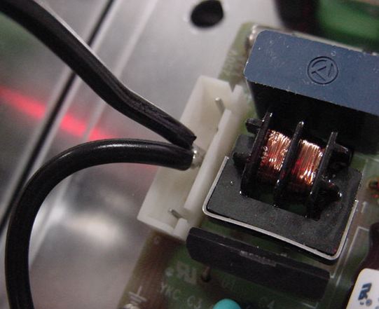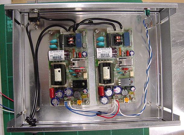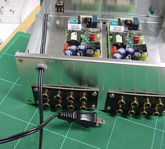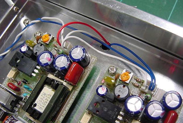 これはスイッチング電源の出力のところです。赤は+5V、白はGND、