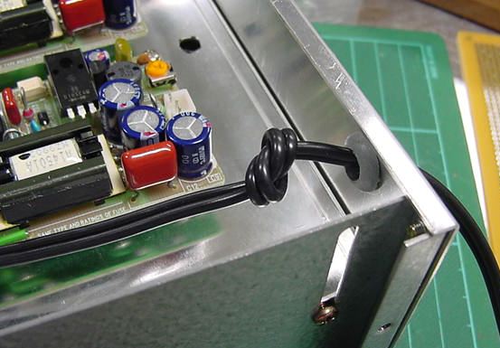 ACコードをブッシングを通してケース内部に入れます。このブッシングを
