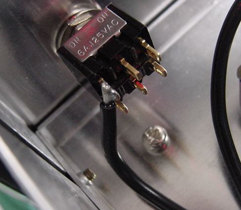 電源スイッチの側も同様に剥いてハンダメッキをして、スイッチの方も