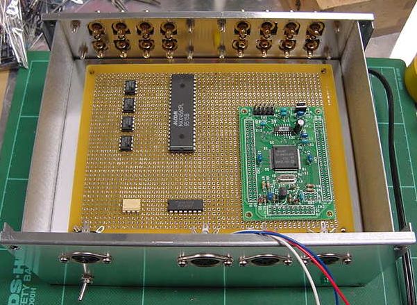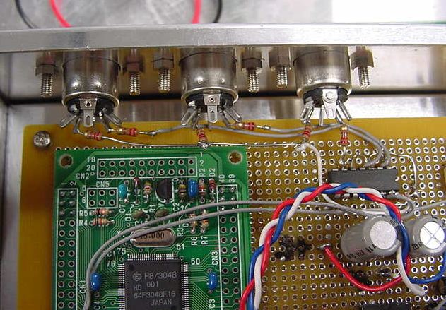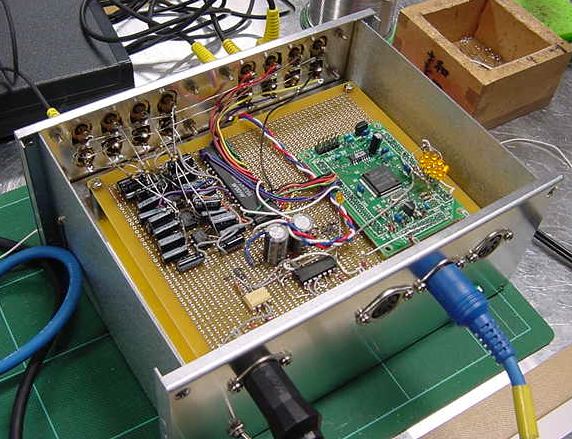 これが、完成したAKI-H8版のMIDIビデオスイッチャです。いろいろと